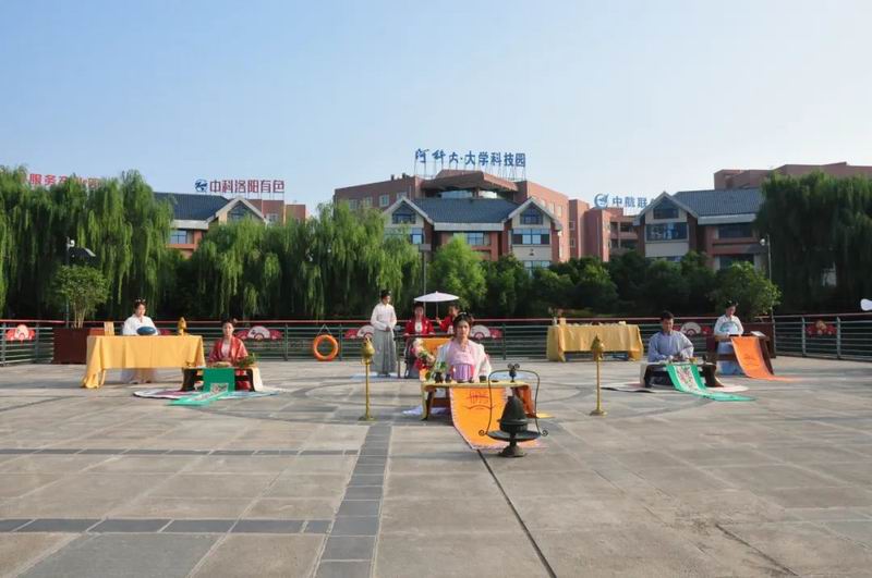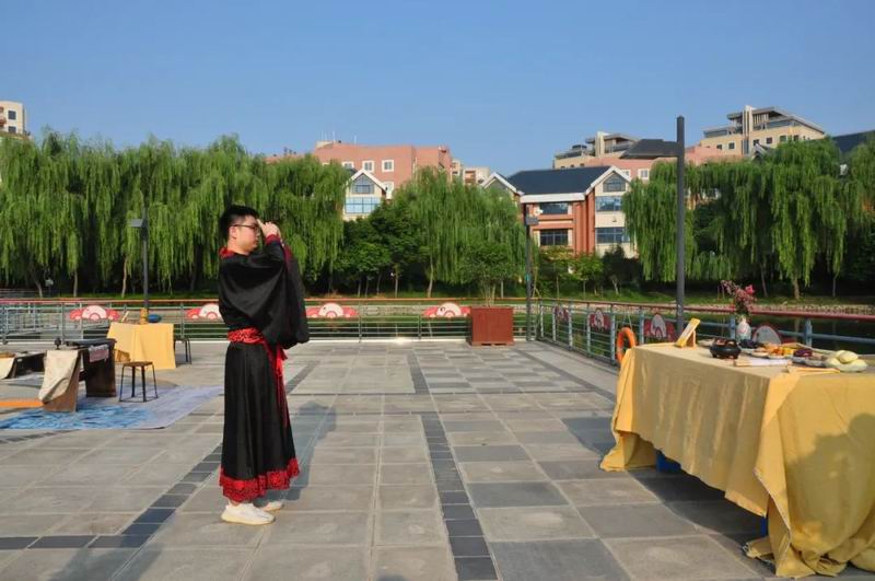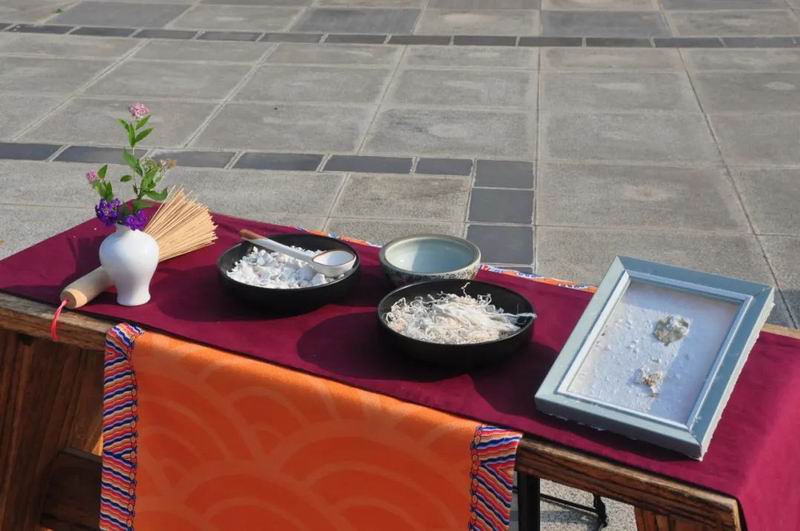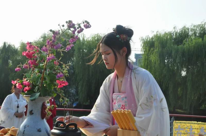 祭拜儀式結(jié)束后,傳統(tǒng)文化愛(ài)好者在古樸深沉、韻味悠長(zhǎng)的古琴演奏中展示了制香、茶藝、古法造紙、香染等非遺文化和傳統(tǒng)技藝。
