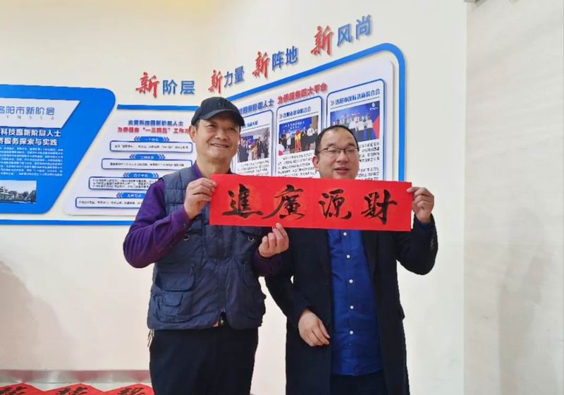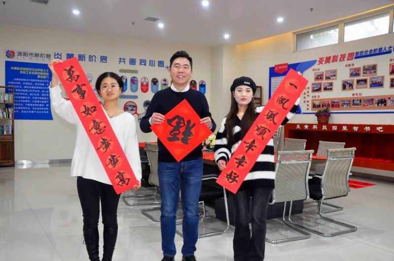 1月14日是農(nóng)歷臘月二十三小年。為迎接兔年的到來,營造喜慶祥和的節(jié)日氣氛,炎黃科技園聯(lián)合黨支部書記、總經(jīng)理楊哲邀請好友——我市書法愛好者黑帥獻來園區(qū)義寫春聯(lián)。