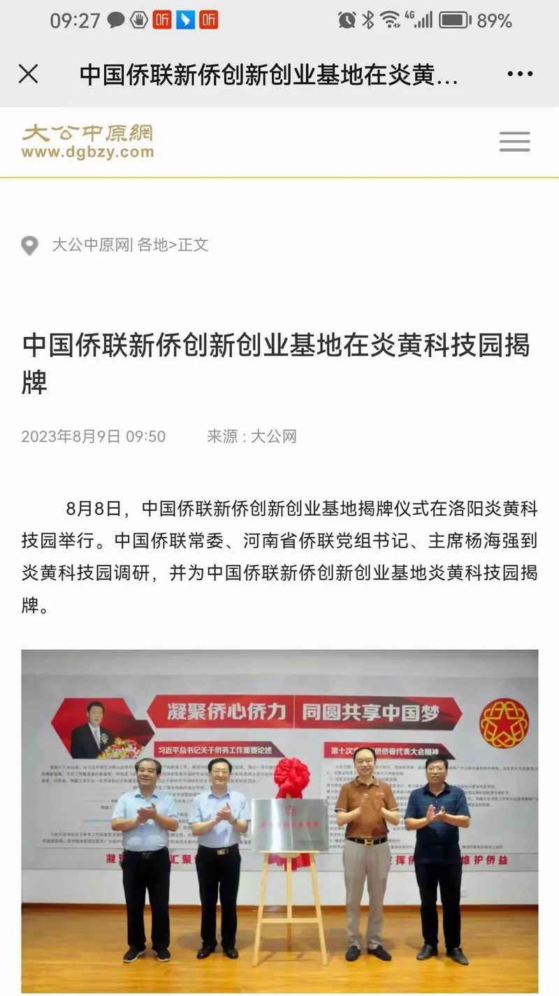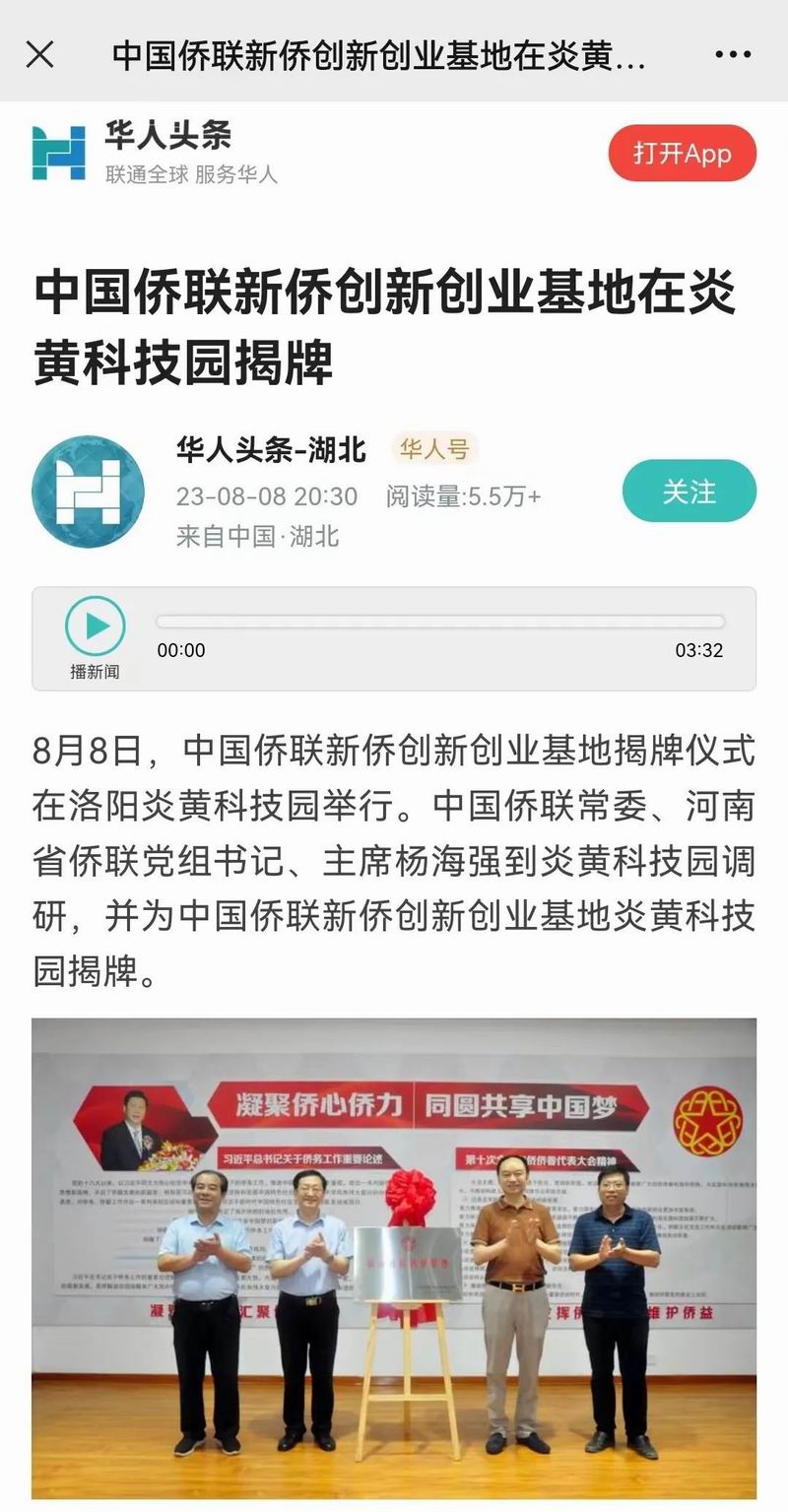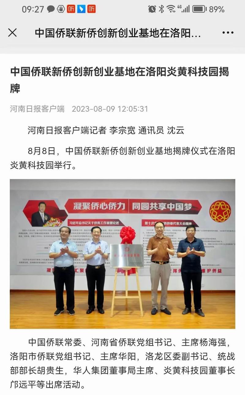 位于洛陽市洛龍區(qū)的炎黃科技園,以為僑服務(wù)為宗旨,在園區(qū)打造關(guān)心、愛心、聯(lián)心、貼心和舒心的“為僑服務(wù)站”,受到各級僑聯(lián)組織的肯定和贊揚(yáng),被中國僑聯(lián)認(rèn)定為“新僑創(chuàng)新創(chuàng)業(yè)基地”。近日,中國僑聯(lián)常委、河南省僑聯(lián)黨組書記、主席楊海強(qiáng)到炎黃科技園調(diào)研指導(dǎo),為中國僑聯(lián)新僑創(chuàng)新創(chuàng)業(yè)基地炎黃科技園揭牌,引起了廣泛的關(guān)注。